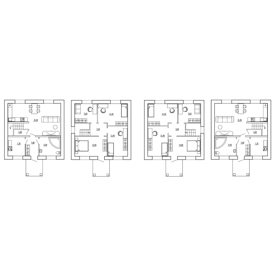 2 этаж - просторные 3 комнаты 14,3/ 14,7/ 13,5 м2, ванная комната.